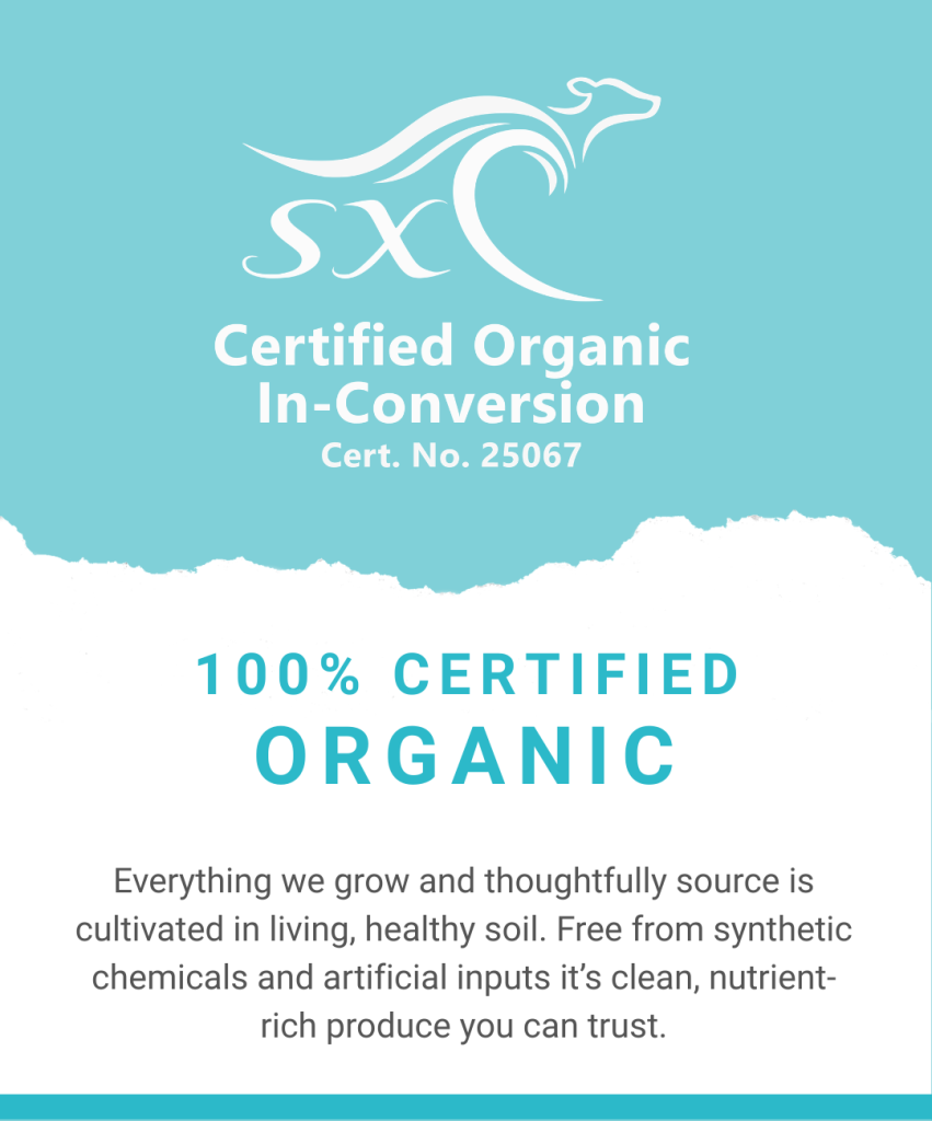 Enjoy freshly harvested, certified organic produce, delivered straight from our farm to your family. Let us choose for you with a set and forget membership, or (coming soon) build-your-own box from our weekly selection.